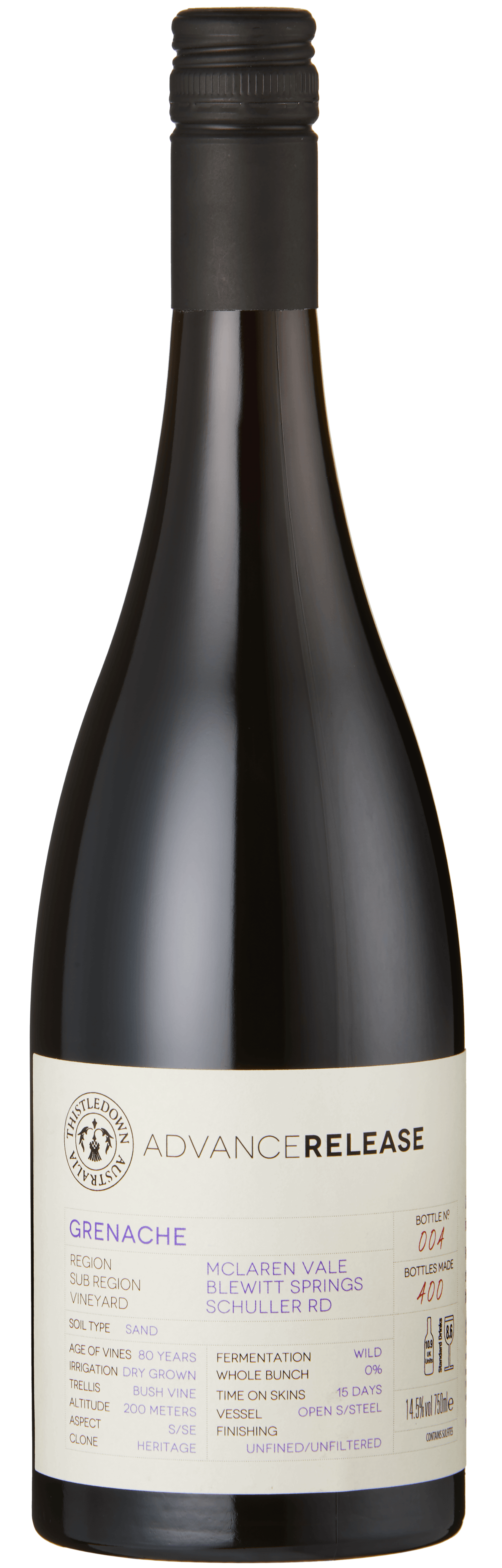 Our Advance Release wines offer a portal into the future of Thistledown. They are wines available in extremely limited quantities (often only around 400 bottles). They are most certainly a passion project - carefully selected, hand-bottled and hand-labelled - showcasing some very special fruit and vineyard sites that excel in any given year.